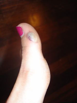 Oooooohhhhh. There is nothing more satisfying than draining the bloody-juicy-ooze out of ones very large blister.